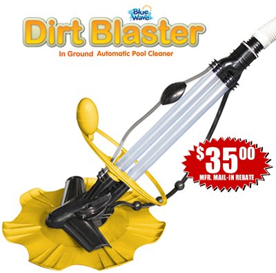 SAME QUALITY AS KREEPY KRAULY, BARACUDA G4 AND POOL SHARK AT THIS GREAT PRICE! Our precisely engineered DirtBlaster will clean any in ground pool regardless of shape or depth. It works on all pool surfaces: vinyl, concrete & fiberglass. With only one moving part, it will remove dirt, twigs, leaves and debris from your pool. Since there is only one moving part, DirtBlaster will give you years of maintenance free operation. Simply plug the unit into your skimmer and DirtBlaster effortlessly cleans your pool. The unit is quick & easy to install and comes complete with 40 of hose. Designed & manufactured by Blue Wave Products, this quality cleaner is built to last. Free yourself from the drudgery of vacuuming with Dirt Blaster. 1-YR Warranty